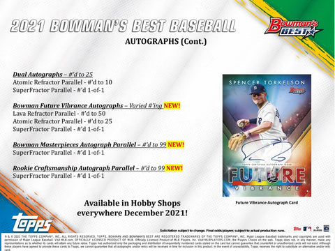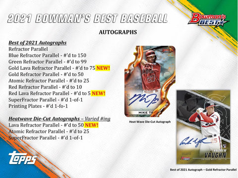 Collect the best that Baseball has to offer with another jam-packed release of 2021 Bowman's Best Baseball!