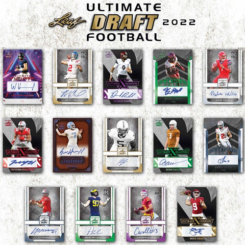 2022 Leaf Ultimate Draft Football Cards Checklist – This release features the perfect mix of exciting 2022 NFL Draft picks and the hottest names from NCAA football including Aidan Hutchinson, Malik WillisMatt Corral, Desmond Ridder, Chris Olave, Bryce Young, C.J. Stroud and many more!