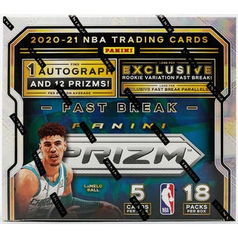 Prizm is back and better than ever with a highly anticipated draft class! On average, each Fast Break box delivers 1 Autograph, 12 Prizms, 6 inserts, and 1 Rookie Variation!