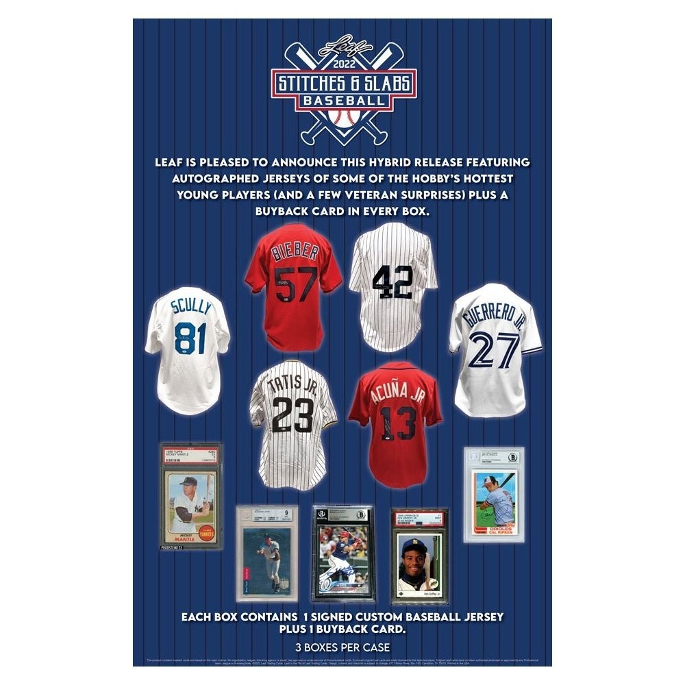 - Leaf is pleased to announce this hybrid release featuring autographed jerseys of some of the hobby's hottest young players (and a few veteran surprises) plus a buyback card in every box!