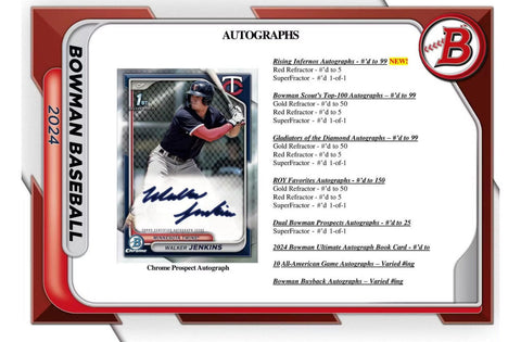 ā The future of baseball is here. Collect 1st Bowmans of the hottest prospects in baseball, showcased on all-new 2024 Bowman Baseball designs!