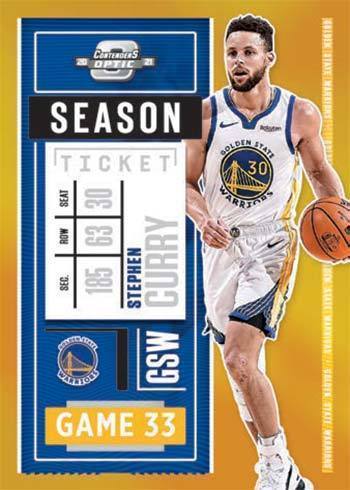 SEASON TICKET: Silver, Red, Blue (#'d/99), Orange (#'d/49), Green Pulsar (#'d/25), Black Pandora, Gold (#'d/10), and one of one Gold Vinyl are all base parallels that can be found in Contenders Optic.
