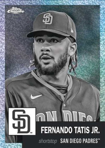 Let the celebration continue with this all-new release of 2022 Topps Chrome Platinum that sets up another all-time classic with the 1953 Topps design, showcasing top players from the past, present, and future on dazzling chrome!