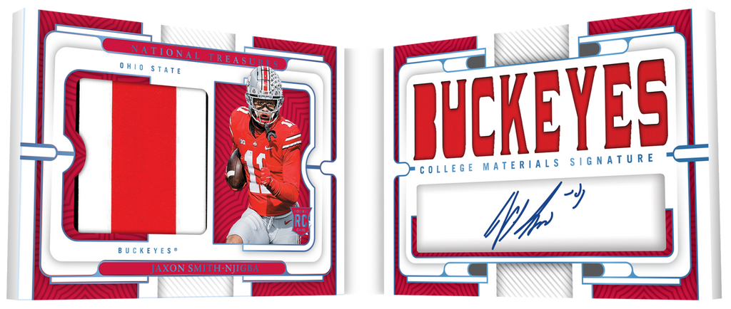 The 2023 Panini National Treasures Collegiate Football Trading Card Box (Hobby) contains 8 cards per pack and 1 pack per box!