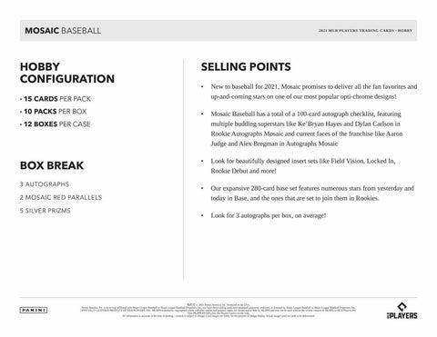 - New to baseball for 2021, Mosaic promises to deliver all the fan favorites and up-and-coming stars on one of our most popular opti-chrome designs!