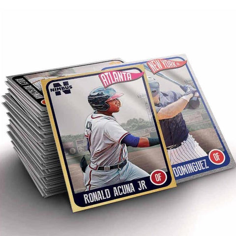 Each box of Onyx Nimbus comes with two On-Card Autographs from baseball stars such as 2018 Rookie of the Year Ronald Acuna Jr., Jasson Dominguez, Wander Franco, Julio Rodriguez and Adley Rutschman. International Prospects Carlos Colmenarez, Armando Cruz, Roderick Arias and more. Thick stock Metallic Silver Border (#'d to 325), Gold Border (#'d to 50), Black Border (#'d to 25) and rare Red (#'d to 5) Autographed cards. Random Inscription autographs - Full names, draft pick year, nicknames anchoring our 2020 end of year update.