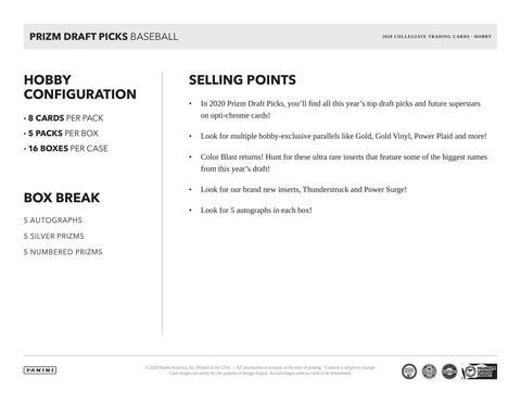 2020 Panini Prizm Draft Picks Baseball Hobby Box